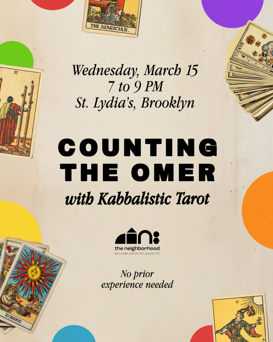 Join The Neighborhood and Kabbalistic Tarot teacher Mark Horn for a special workshop guiding us through the connections between Jewish mysticism and Tarot, where we will learn a practice for spiritual reflection during the period of the Omer using the Tarot deck.